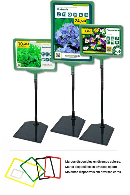 Soportes extensibles en distintos tamaños para colocar tus Garden Cards.